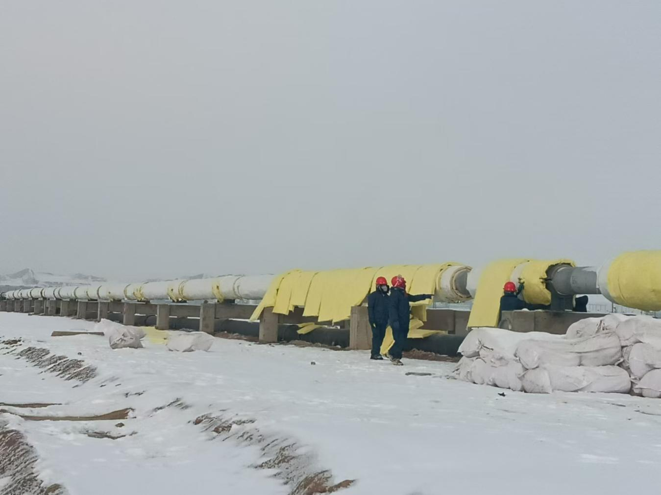 入冬以來的第二場雪,使得項目建設(shè)的難度達(dá)到新的高度。面對晝夜零下十幾度的嚴(yán)峻天氣考驗,現(xiàn)場施工隊伍決定在管道基礎(chǔ)制作期間,采用混凝土分段澆筑的方式有序施工。白天氣溫相對高的時候進(jìn)行澆筑,每段澆筑完成后及時搭設(shè)保溫棚,夜間在保溫棚內(nèi)部生火,避免混凝土受凍,確保其強(qiáng)度達(dá)到要求。