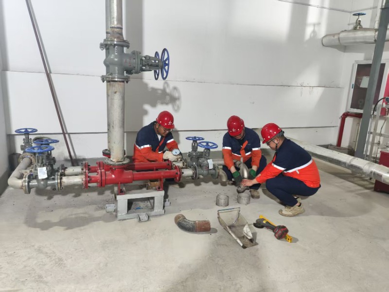 為確保本次技改實施質(zhì)量與進度,化工熱電公司技術團隊采用 “圖紙比對 + 現(xiàn)場復核” 雙軌制,每日開展三次技術交底,在焊接、吊裝等關鍵環(huán)節(jié)設置質(zhì)量監(jiān)控點。項目組構建起網(wǎng)格化防護體系,合理調(diào)整施工時段,24小時不間斷供應冰鎮(zhèn)水、含鹽飲品及藿香正氣水等防暑物資,每日定時開展體溫監(jiān)測與設備巡檢,確保作業(yè)環(huán)境安全可控。截至目前,已基本完成設備、管件吊裝及100余道焊口焊接工作,高壓除氧器乏汽回收系統(tǒng)已完成蒸汽回收管道的安裝工作,預計投運之后每年可固定回收蒸汽3255524萬千焦,折合標煤近1200余噸,節(jié)約支出約70萬元/年。