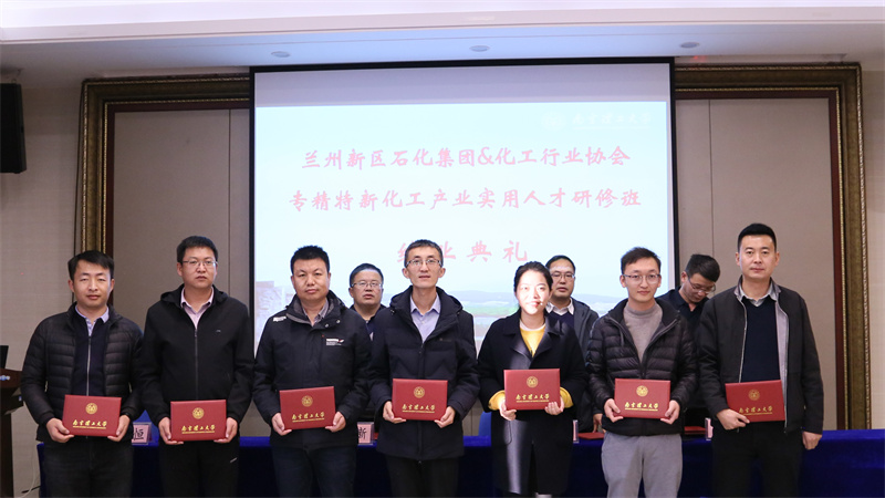 12月3日下午,由新區(qū)石化集團與南京理工大學繼續(xù)教育學院合作舉辦的“蘭州新區(qū)專精特新化工產業(yè)實用人才研修班”順利結業(yè)。結業(yè)儀式上,為學員頒發(fā)了結業(yè)證書。