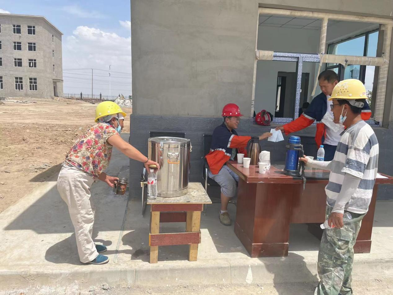 為確保項目順利竣工,化學(xué)工程公司為施工一線工人送去了清涼飲品,綠豆湯、酸梅湯等,并每日安排專人送到施工現(xiàn)場,讓工友們從心底感受到公司送來的清涼關(guān)愛,“涼”在身上,“暖”在心間。項目部管理人員叮囑現(xiàn)場施工人員要注意安全,在夏日工作中一定要注意防暑,牢記高溫季節(jié)施工安全注意事項,合理安排作息時間,注意勞逸結(jié)合。