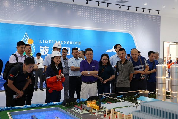 2020年7月19-21日,中科院大連化學(xué)物理研究所李燦院士帶領(lǐng)英國BP公司、榆林碳?xì)溲芯吭汗煞萦邢薰镜?3家單位30多名領(lǐng)導(dǎo)專家在新區(qū)科技發(fā)展局領(lǐng)導(dǎo)的陪同下,到蘭州新區(qū)綠色化工園區(qū)考察蘭州新區(qū)石投集團(tuán)建設(shè)、試車的液態(tài)太陽燃料合成項(xiàng)目——二氧化碳加氫合成甲醇中試和示范工程項(xiàng)目。