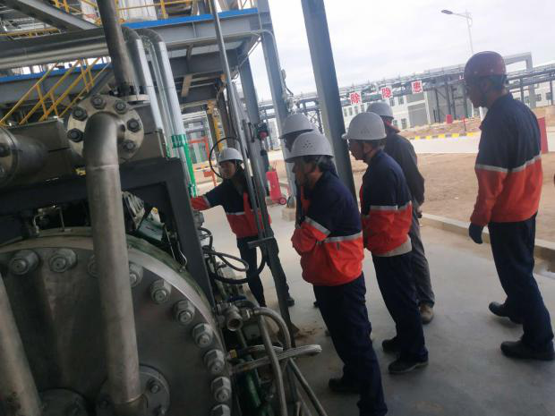 根據(jù)石投集團2020年項目建設及運營重點任務,結合液態(tài)太陽燃料合成示范工程運行工作要求,近期,石投集團專精特新公司利用周末時間,特邀請設計院、設備廠家對于項目試車過程中出現(xiàn)的問題進行實地討論解決,切實保障項目裝置按期滿負荷運行。