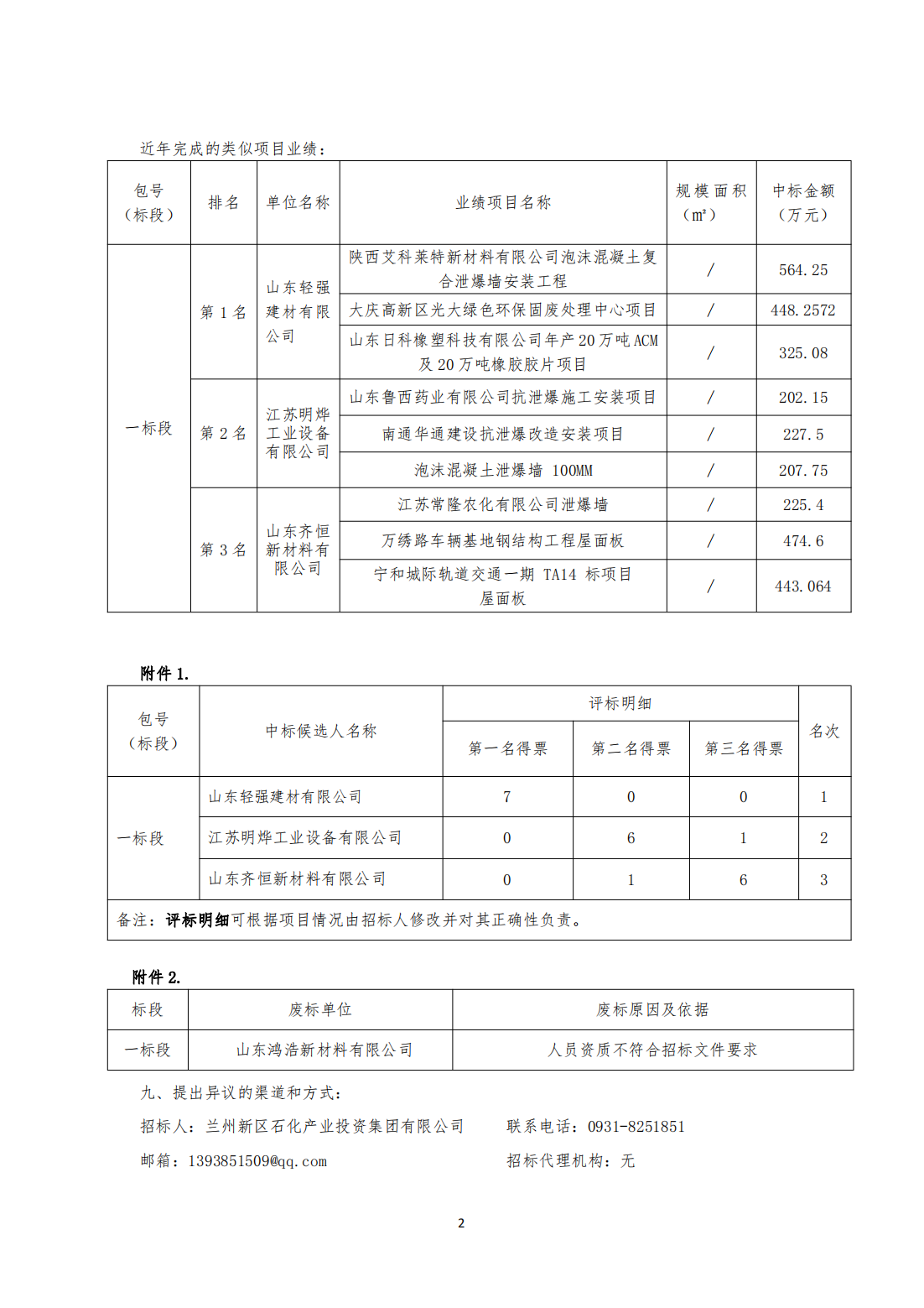 蘭州新區(qū)專精特新化工產(chǎn)業(yè)孵化基地項目(C 區(qū))一期、 三期屋面板墻面板框架采購中標(biāo)候選人公示